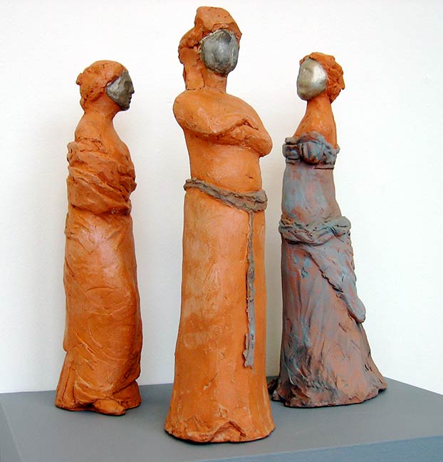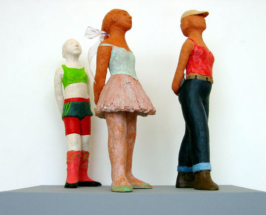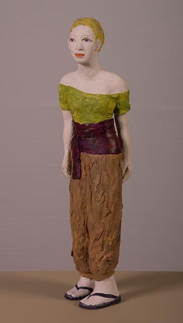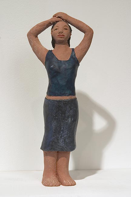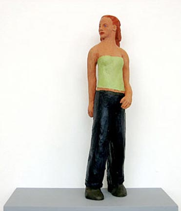 All the figures in this series are ‘miniature’ sized, like the Roman lares, or household gods. For the contemporary pieces I often worked from fashion photographs which are enigmatic statements—heavy with ‘attitude’—of contemporary values. It is perhaps a bit ironic to imply their potential to be household gods.